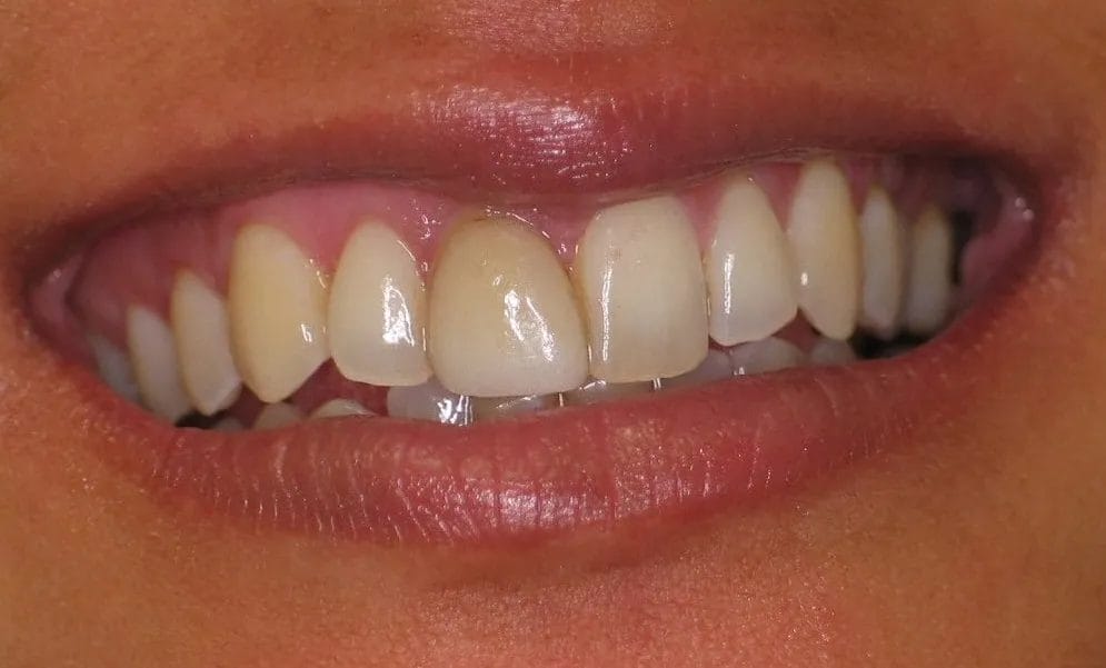 Dental Veneers used to match the left tooth to the right tooth for a more symmetrical smile.